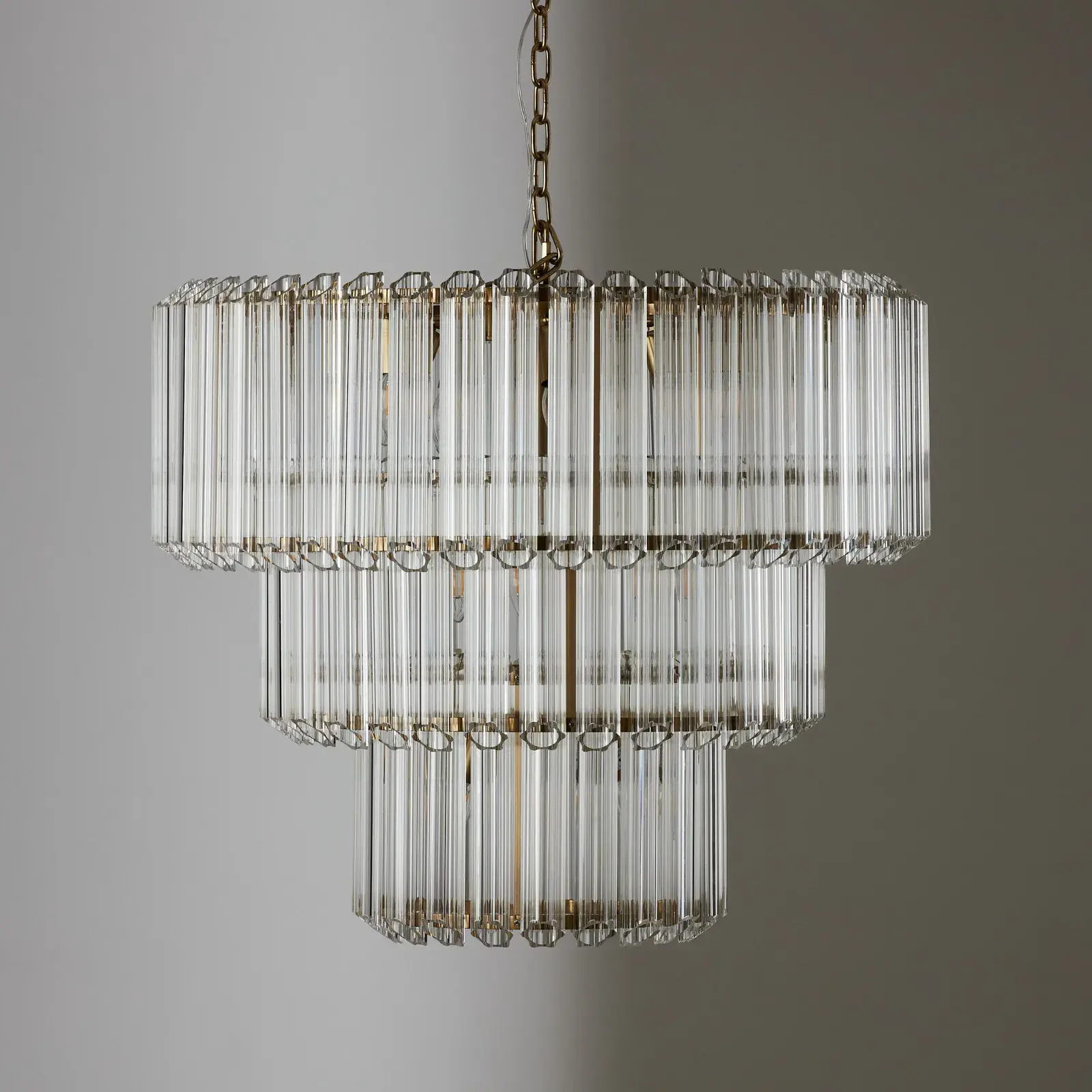 Complementing the hammered glass is a brushed gold frame that adds a touch of opulence to the chandelier. The gold finish not only enhances its aesthetic appeal but also integrates seamlessly with various interior styles, from contemporary to classic.